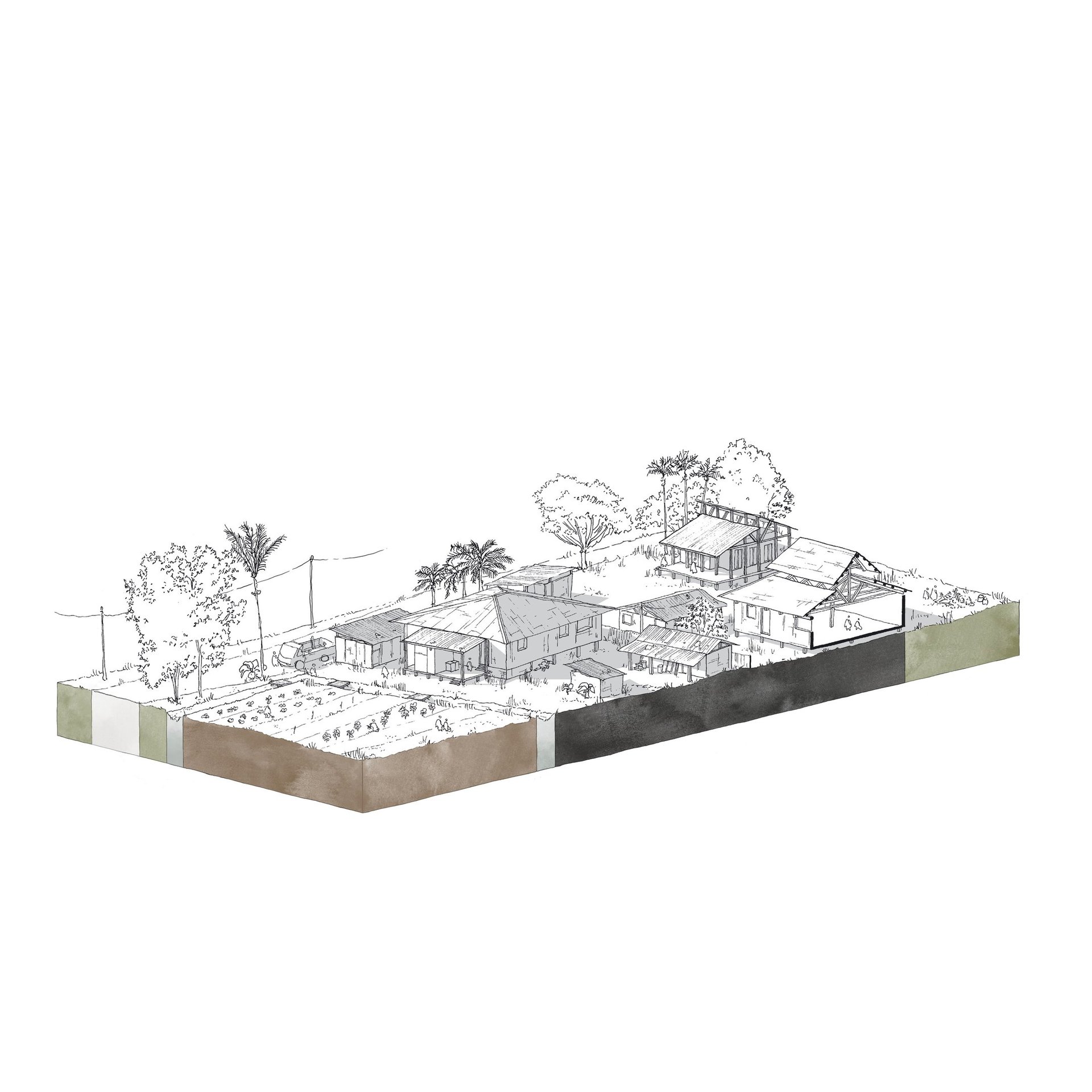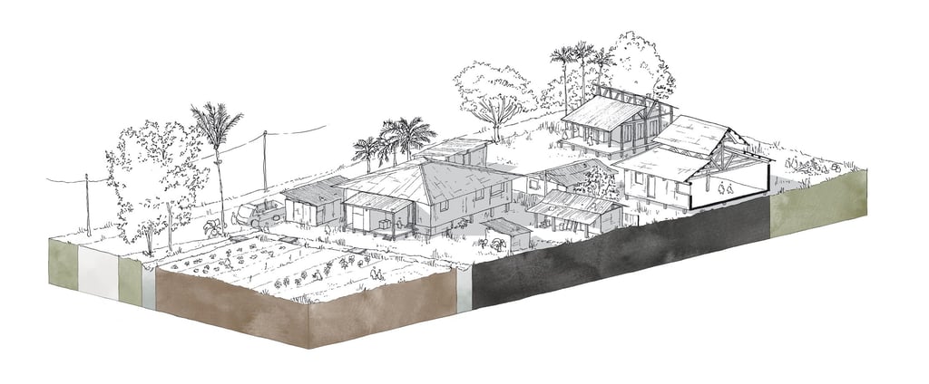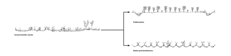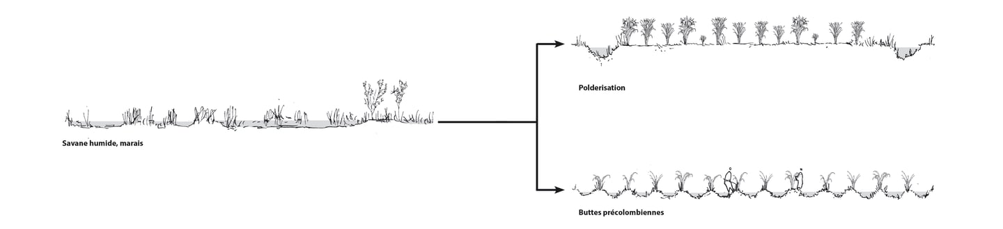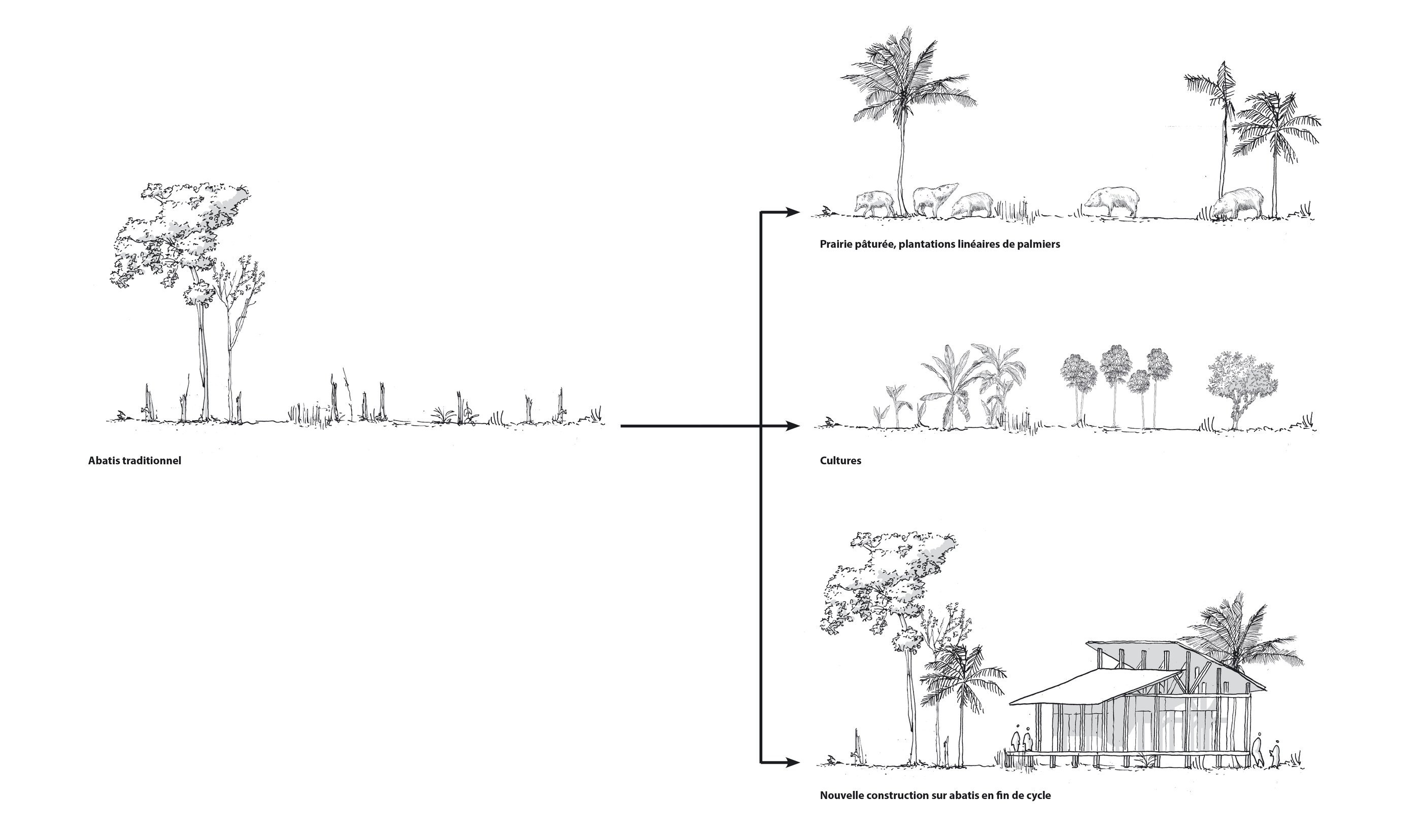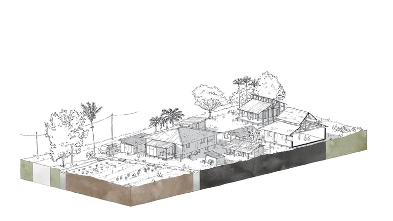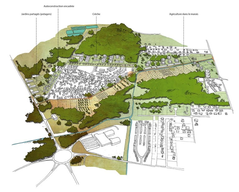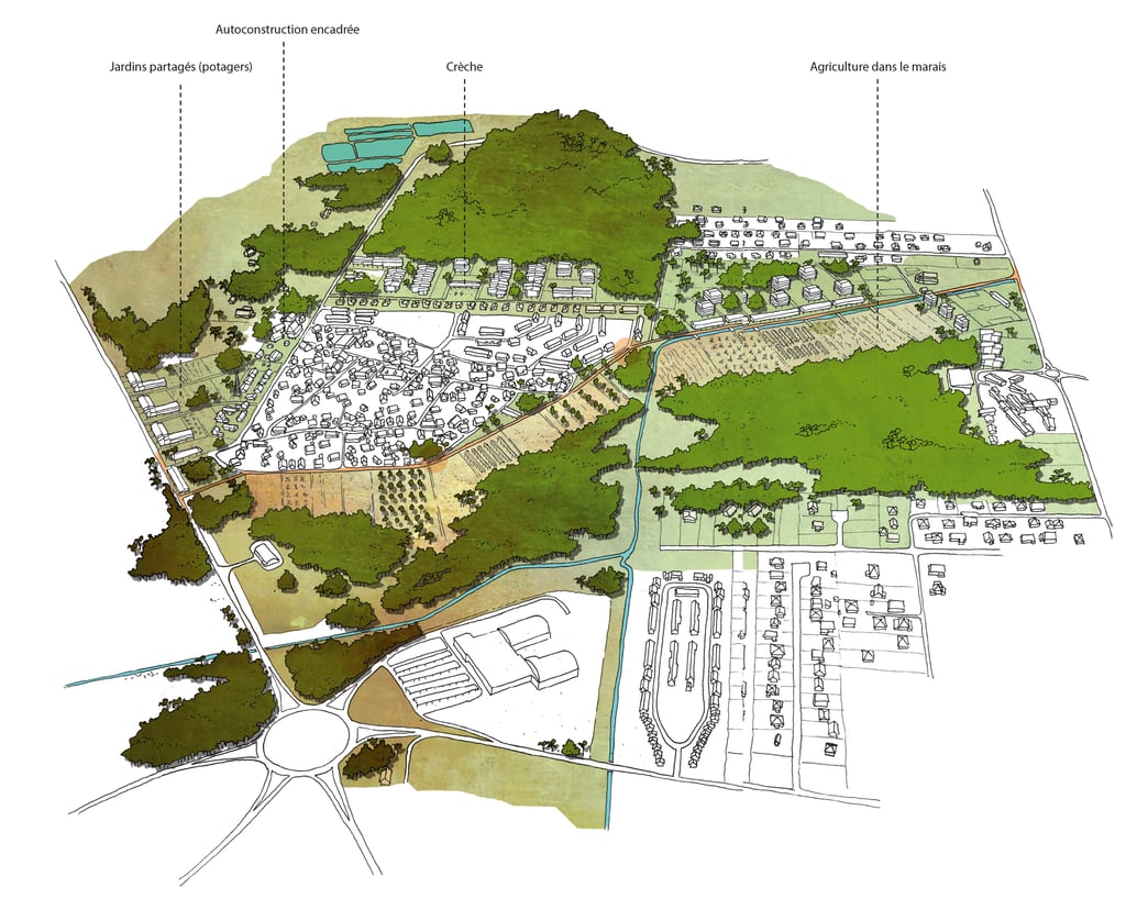 Ce travail prospectif illustre une alternative au modèle proposé par les documents d'urbanisme en vigueur. L'étude réinterprète les ressources dormantes du territoire afin de faire émerger une autre vision de l'île de Cayenne.