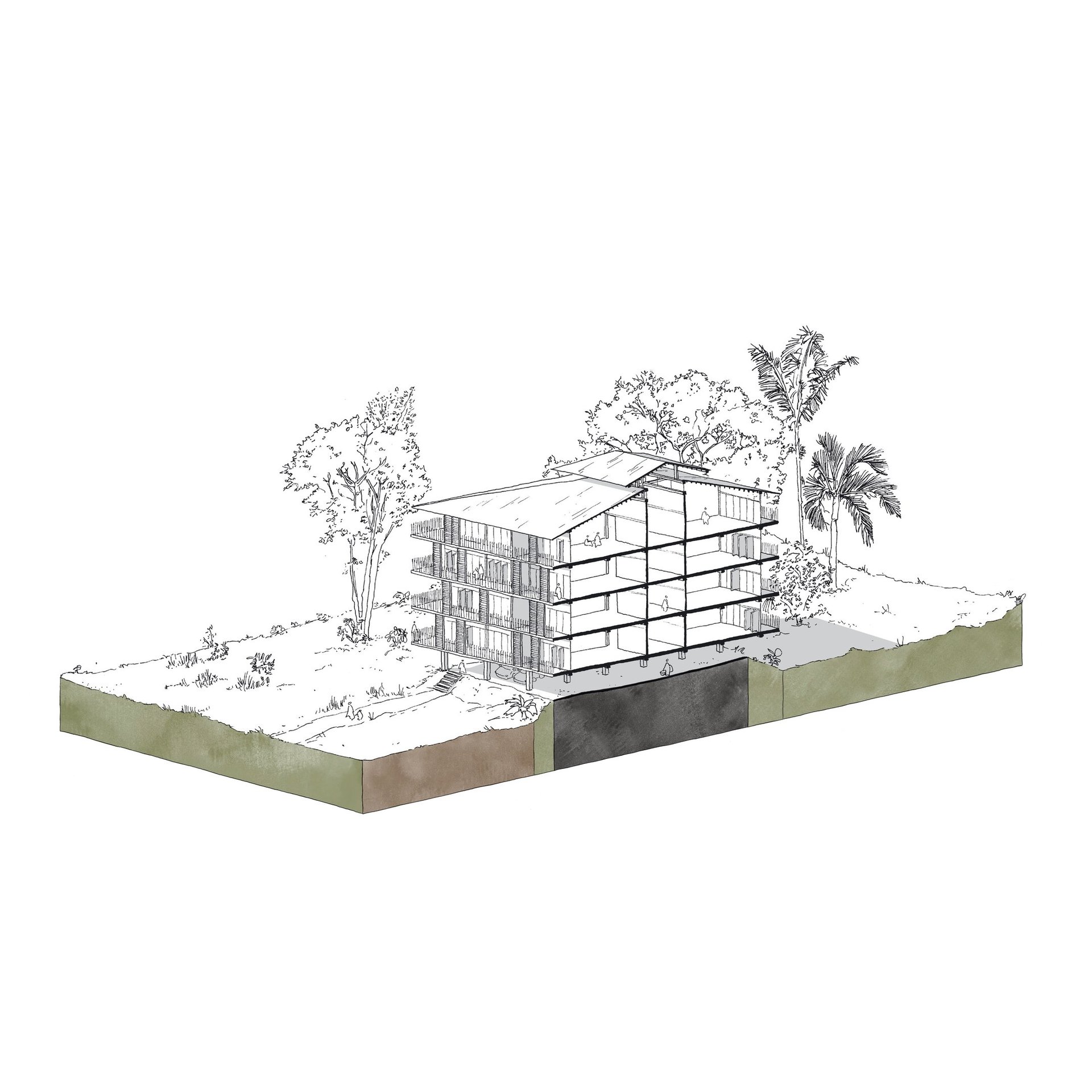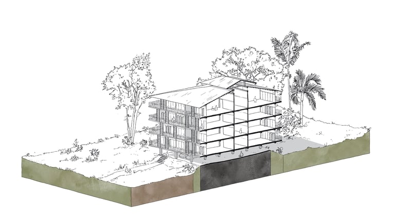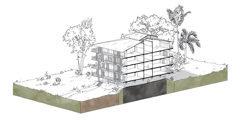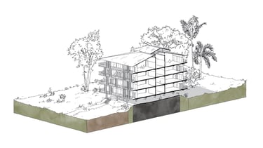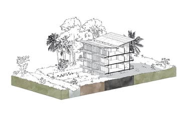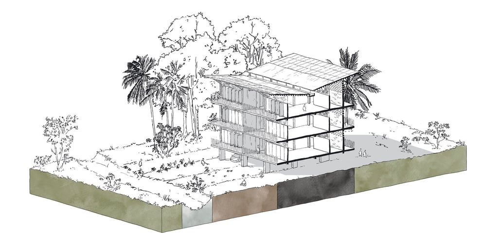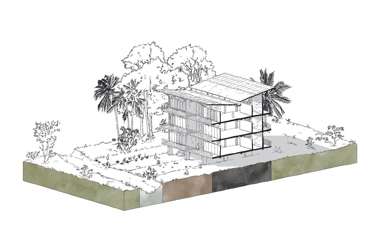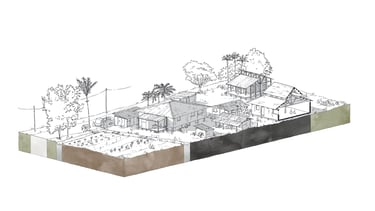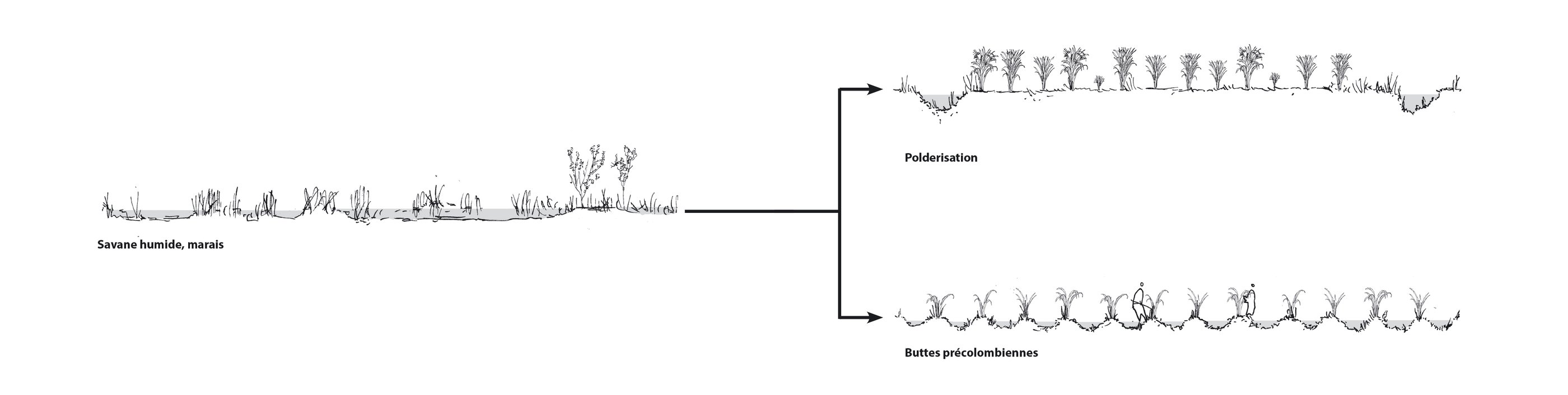 Ce travail prospectif illustre une alternative au modèle proposé par les documents d'urbanisme en vigueur. L'étude réinterprète les ressources dormantes du territoire afin de faire émerger une autre vision de l'île de Cayenne.