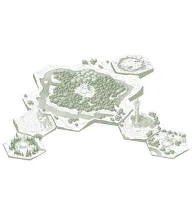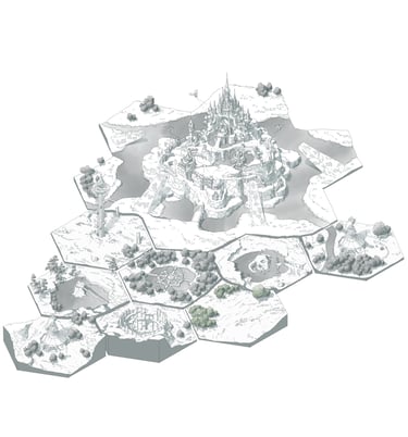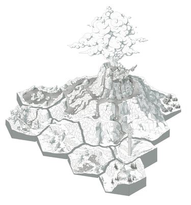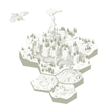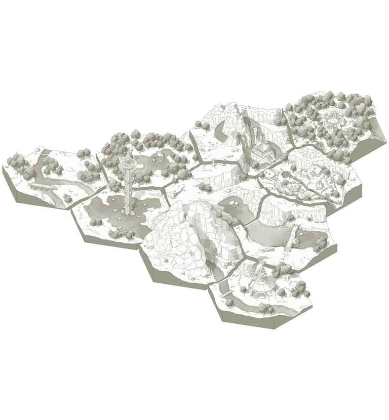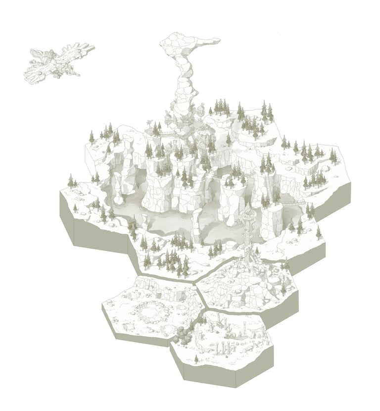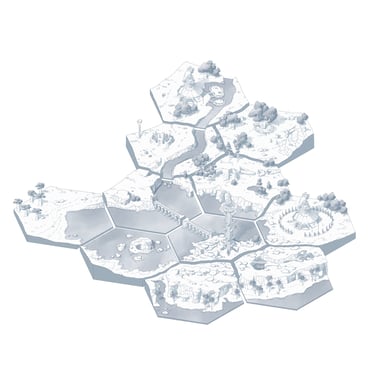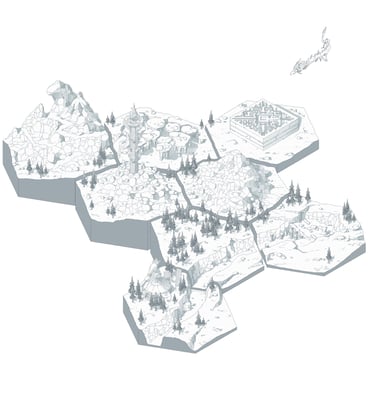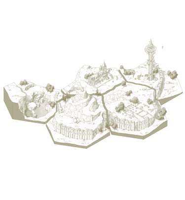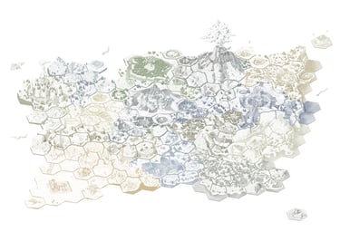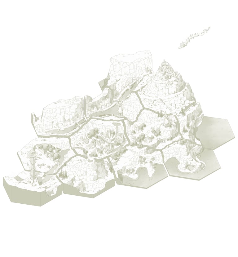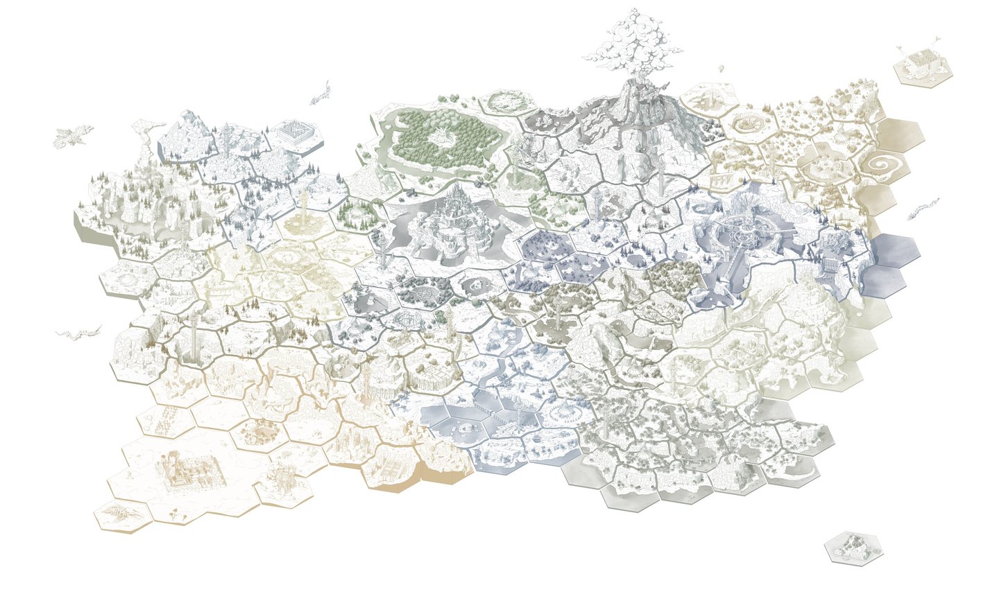L’hexagone me donne la liberté de dessiner précisément les lieux en leur donnant une hiérarchie. Ainsi les éléments comme les villes ou les tours Cheikahs apparaissent plus importants et plus précis par rapport aux plaines ou aux forêts.
