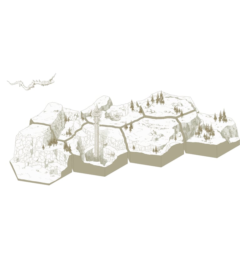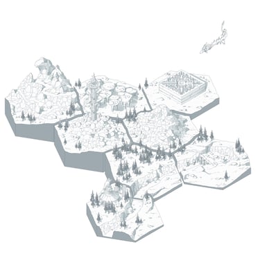 Le choix de dessiner en hexagones isométriques s’est imposé comme une solution adapté à la représentation d’une carte aussi grande que celle d’Hyrule. Chaque hexagone me permet de m’affranchir des notions d’échelle ou de distance tout en conservant la proportion globale de la carte et la position géographique des lieux les uns par rapport aux autres.