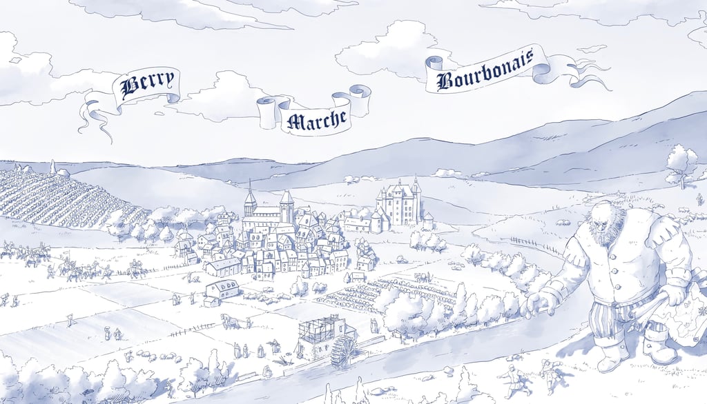 Dessin réalisé dans le cadre du concours MT 180 (Ma thèse en 180 minutes) pour illustrer la thèse d'Etienne Ménager. La thèse s'intitule "Entre Berry, Marche et Bourbonnais : construction des territoires et dynamiques spatiales dans une société féodale (XIe - XVIe siècles)" qui, par le biais d'une démarche géo-historique, dessine des cartes pour rendre compte des espaces du passé. L'enjeu de la thèse est d'expliquer des aspects du présent résultant de processus du passé.