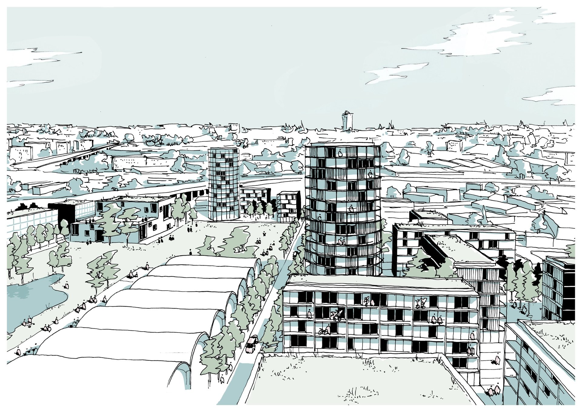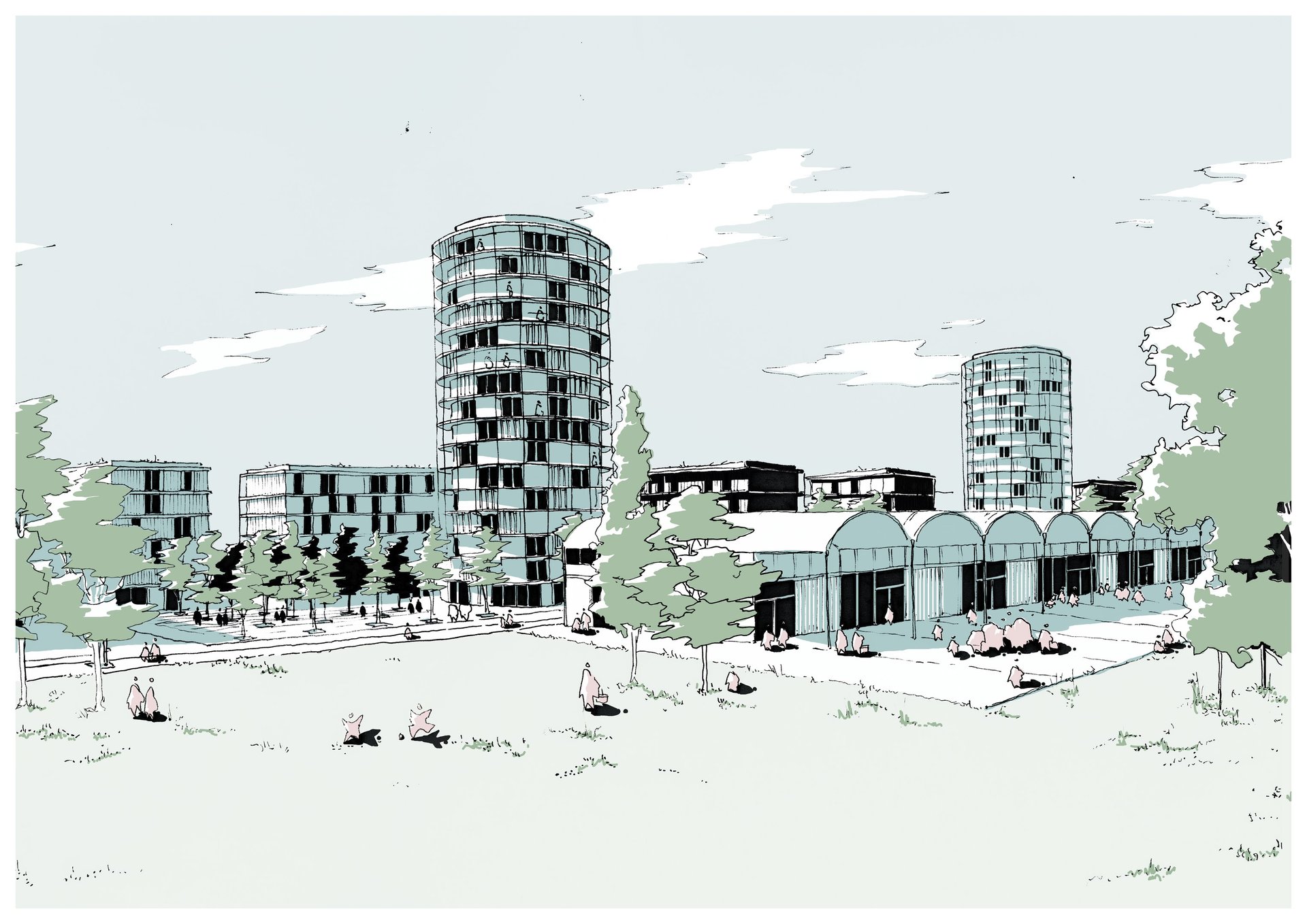 Illustrations issu du projet VLG Campus réalisées pour l’agence Martin Duplantiers Architectes à Paris